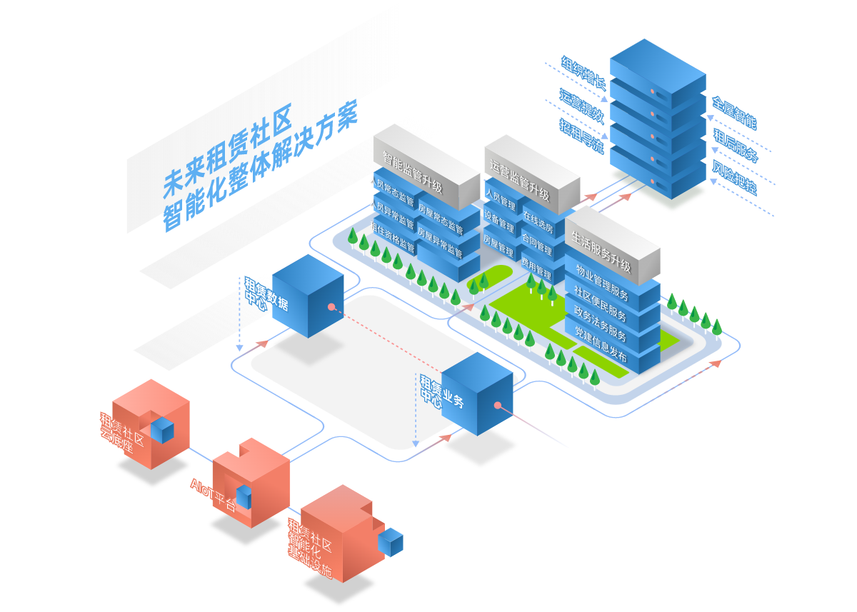以 “租住服务+社区运营+政务监管” 多维业务需求为引领,驱动租赁社区智能化设施的完善建设、租住管一体化流程的优化设计,以软硬结合、数据联动的运营管理方式,打造以SaaS服务模式为主的城市级“智慧租住”综合运管服务与监管一体化平台,在以便捷移动服务触达租客、商户、管家端的同时,为政务监管部门提供住房租赁市场业务监管和流口治理整体解决方案